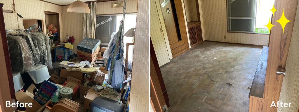 物が溢れかえっている状態から平均して1日以内で綺麗に片付け致します!(2日以上かかる場合は事前にお伝えします)